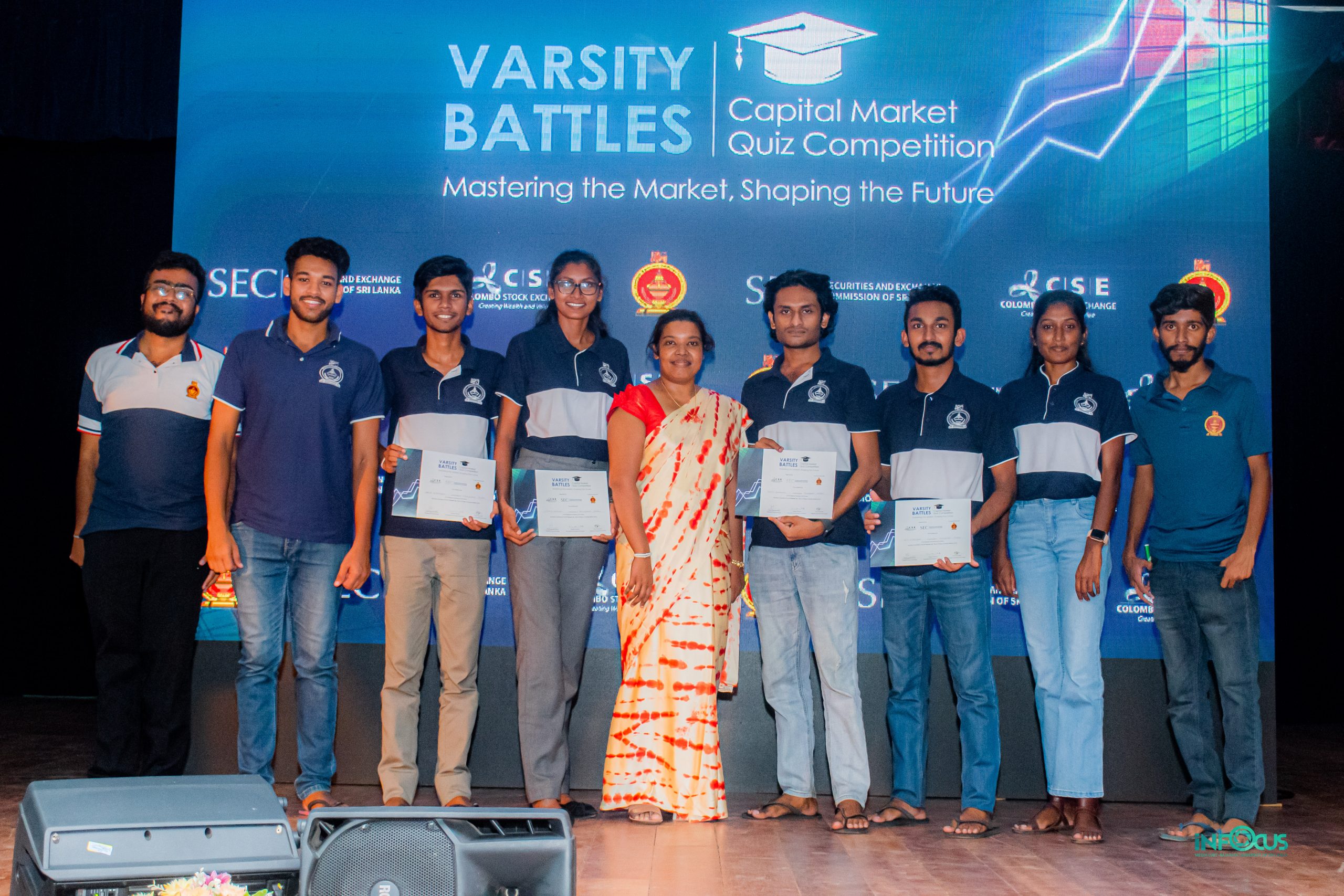 Representing the Faculties, 13 teams competed with each other under the guidance of the Faculty University Business Linkage coordinators. The winning group and the 1st runner up group of the Varsity Battles Capital Market Quiz Competition represented Faculty of Applied Sciences and the 2nd runner up group represented Faculty of Management Studies. The winning group was awarded a cash price of Rs.75,000.00. All three-team got qualified to face the final Quiz competition which will be held in Colombo at the end of this year.